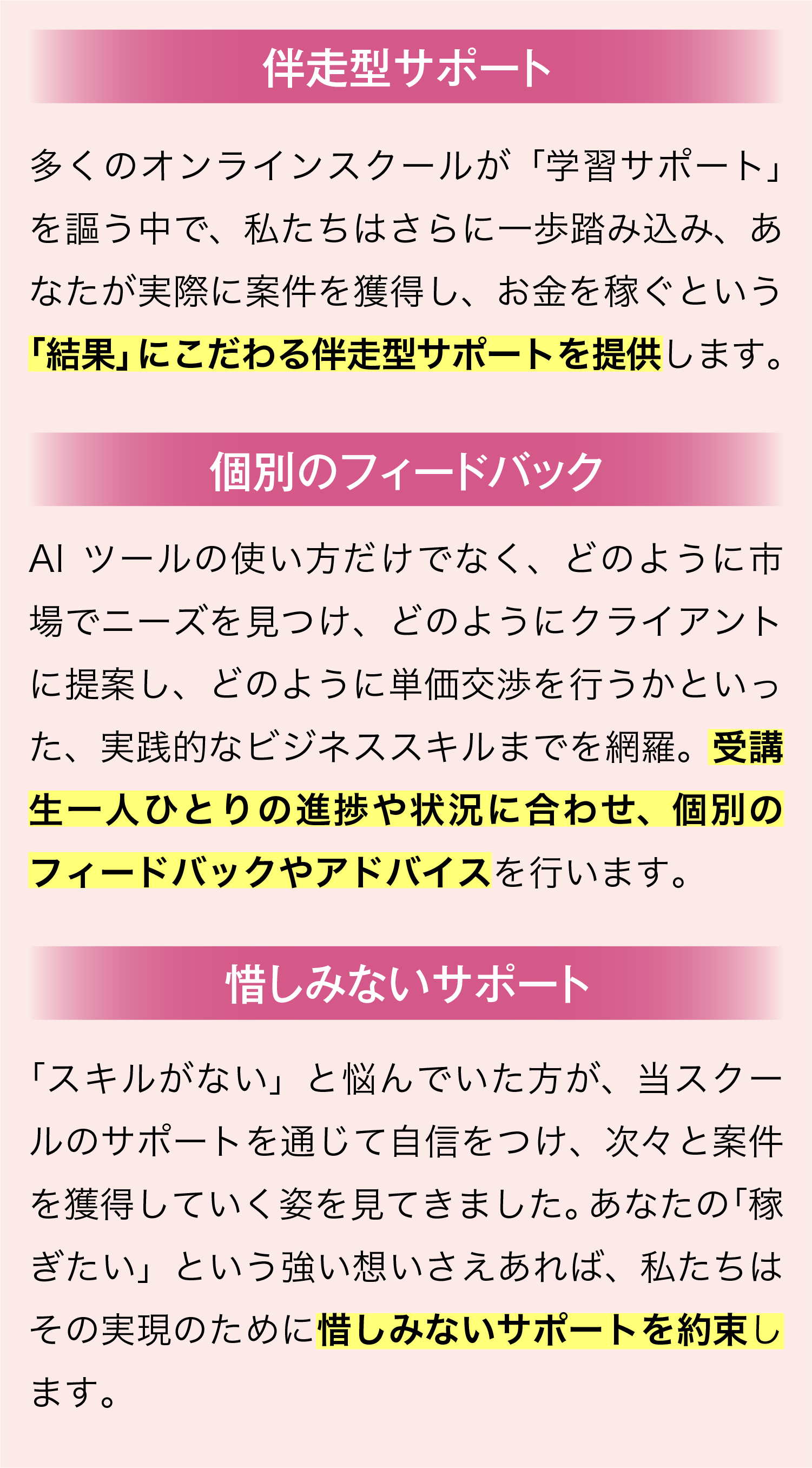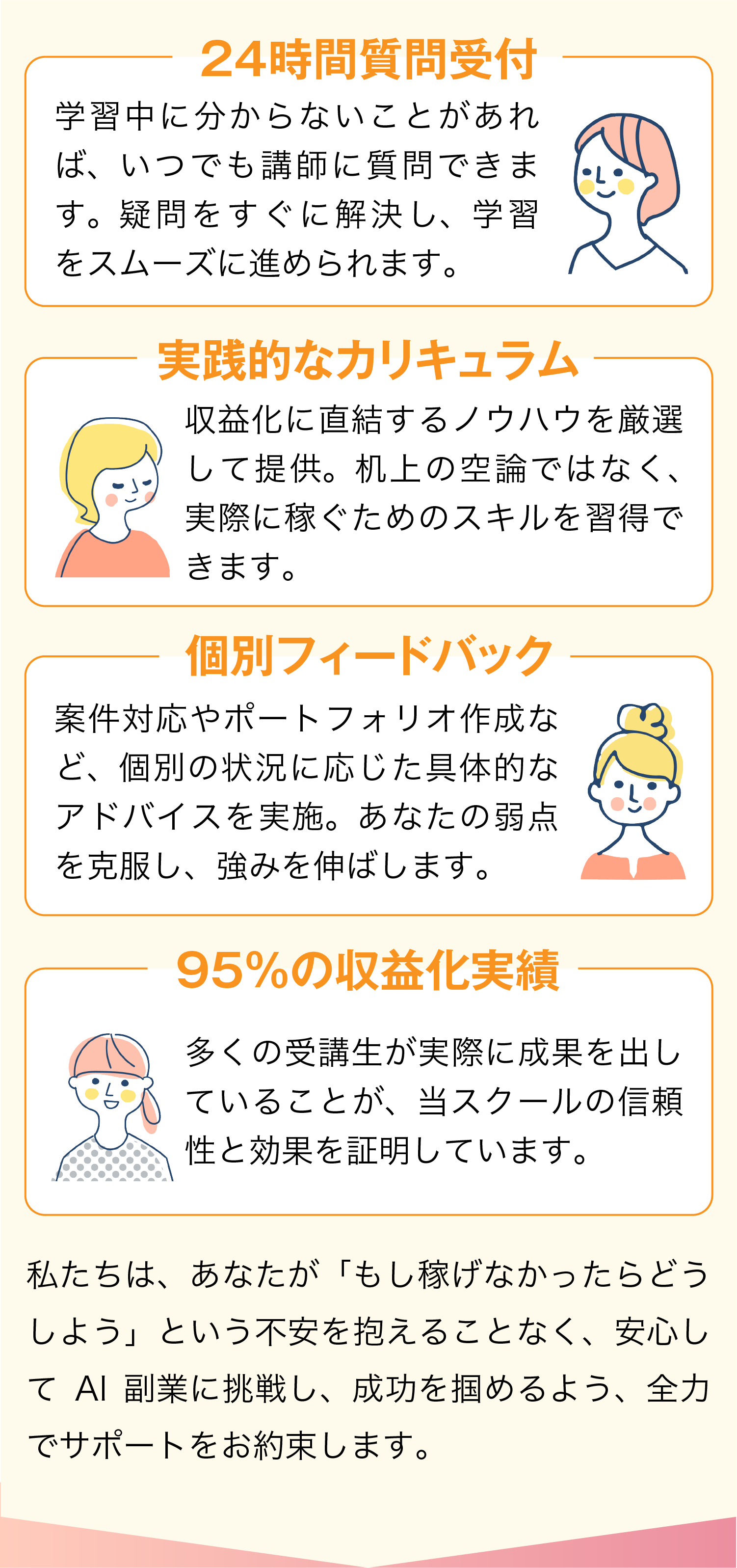 もし稼げなかったら、そんな不安を解消する徹底サポート